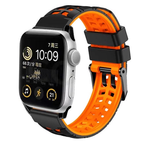 Correa de Silicona para Apple Watch Se 2022 40mm con Hebilla Doble Fila de Sarga (Negro Naranja)