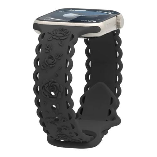 Correa para Apple Watch SE 2023 de Silicona con Relieve Rosa 3D y Encaje 40mm (Negro)