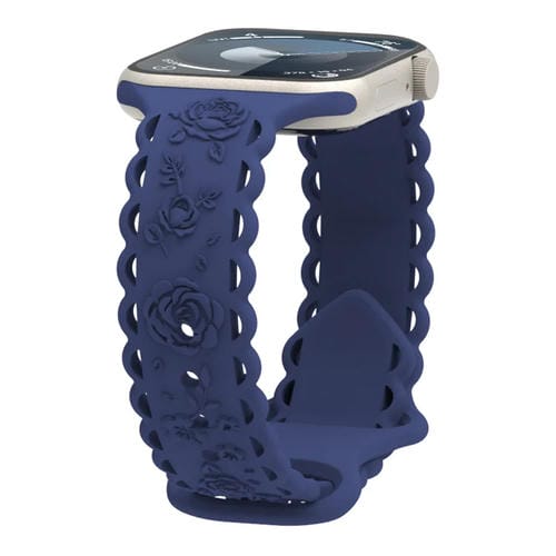 Correa para Apple Watch SE 2023 de Silicona con Relieve de Rosa 3D y Encaje 44mm (Azul Marino)