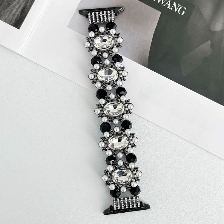Correa para Apple Watch Series 8 45mm con Pulsera de Piedras Preciosas y Perlas (Negro)