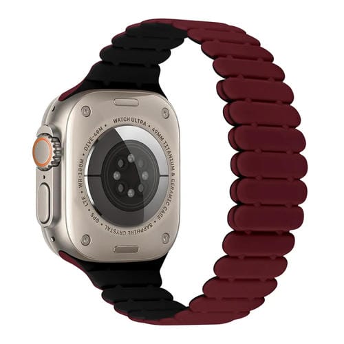 Correa de Silicona Magnética para Apple Watch Ultra 2 de 49mm (Rojo Vino Negro)