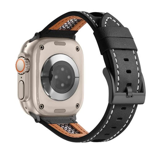 Correa de Cuero Genuino para Apple Watch Ultra 49mm de Piel de Becerro Malla (Negro)