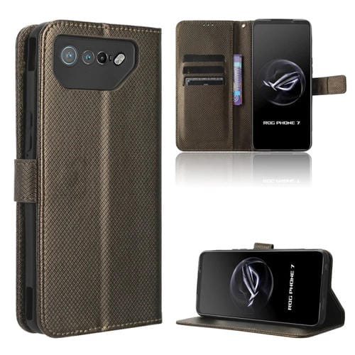 Funda de Cuero para Asus Rog Phone 7 con Textura de Diamante (Marrón)