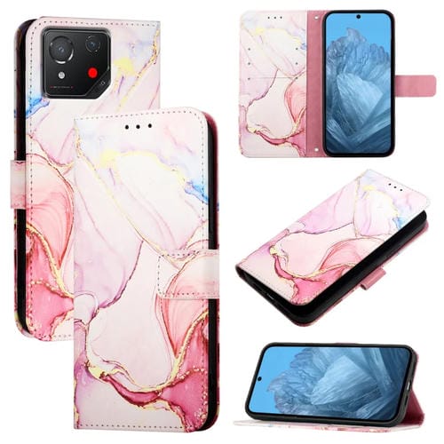 Funda para Asus Rog Phone 8 Pt003 de Cuero con Tapa y Patrón de Mármol (Oro Rosa)