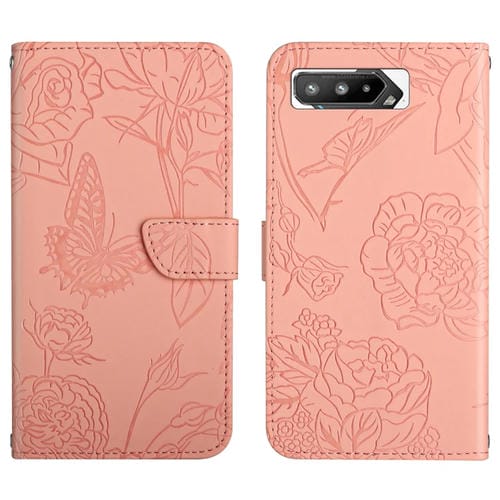 Funda de Cuero en Relieve para Asus Rog Teléfono 5 Zs673Ks Siente la Piel Mariposa (Rosa)