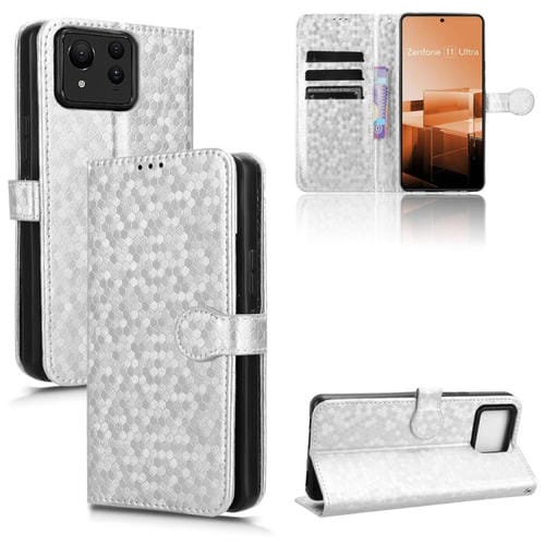 Funda de Cuero Asus Zenfone 11 Ultra Honeycomb Dot Texture para Teléfono (Plata)