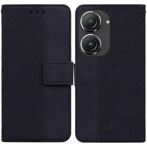 Estuche de Cuero para Asus Zenfone 9 con Tapa en Relieve Geométrico (Negro)
