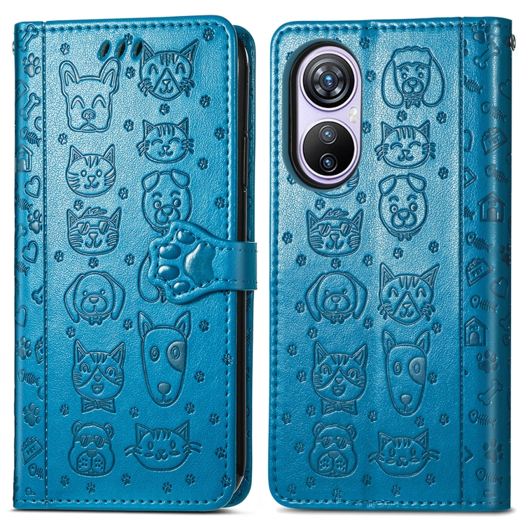 Funda de Cuero para BlackView A200 Pro con Relieve Perros y Gatos (Azul)