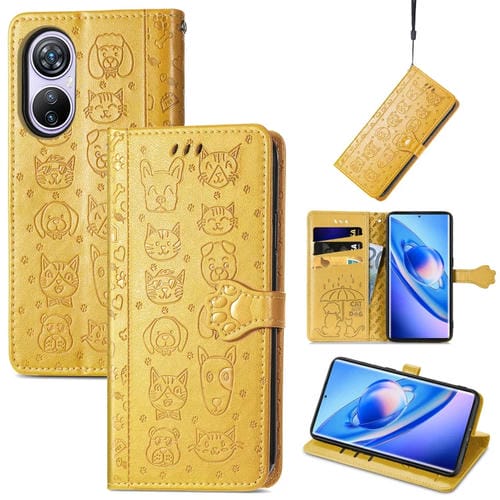 Funda para BlackView A200 Pro de Cuero con Relieve Perros y Gatos (Amarillo)