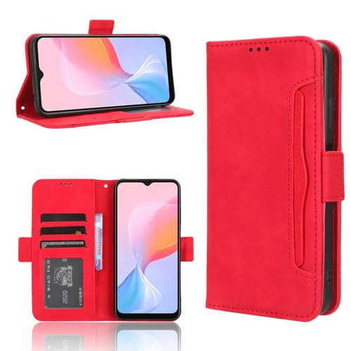 Funda de Cuero BlackView A85 con Textura Becerro y Ranuras para Tarjetas (Rojo)