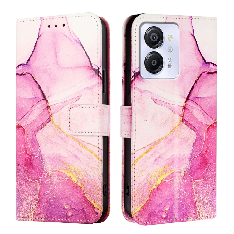 Funda de Cuero para BlackView Color 8 Pt003 con Tapa y Patrón de Mármol (Oro Rosa Púrpura)