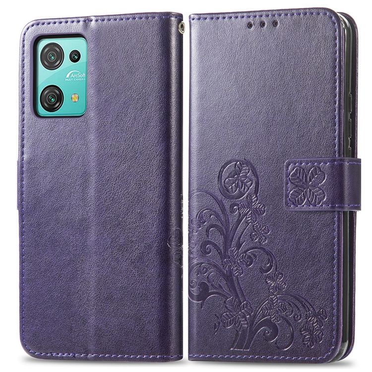 Funda de Cuero para BlackView Oscal C30 Pro con Hebilla en Relieve y Cierre de Cuatro Hojas (Púrpura)
