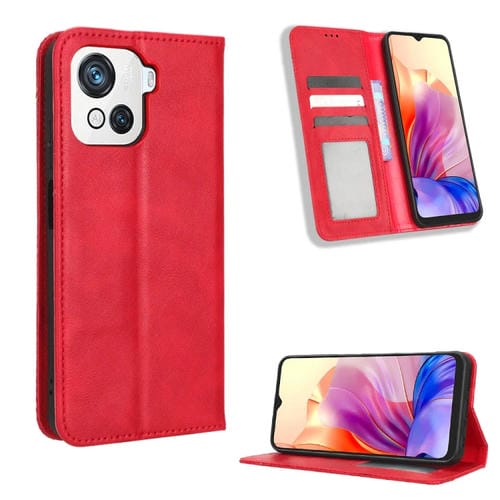 Funda de Cuero para BlackView Oscal C80 con Hebilla Magnética y Textura Retro (Rojo)