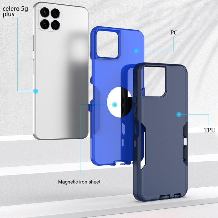 Estuche Magnético 2 en 1 para Boost Mobile Celero 5G PC + TPU (Azul Real + Azul Oscuro)