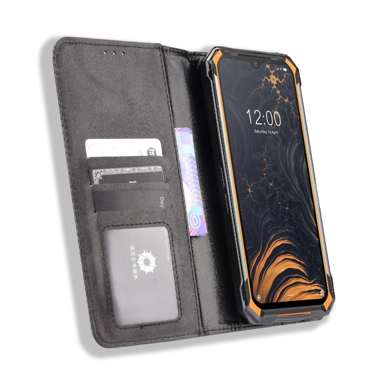 Funda de Cuero para Doogee S88 Plus y S88 Pro con Hebilla Magnética, Soporte, Tragamonedas y Marco de Fotos (Negro)