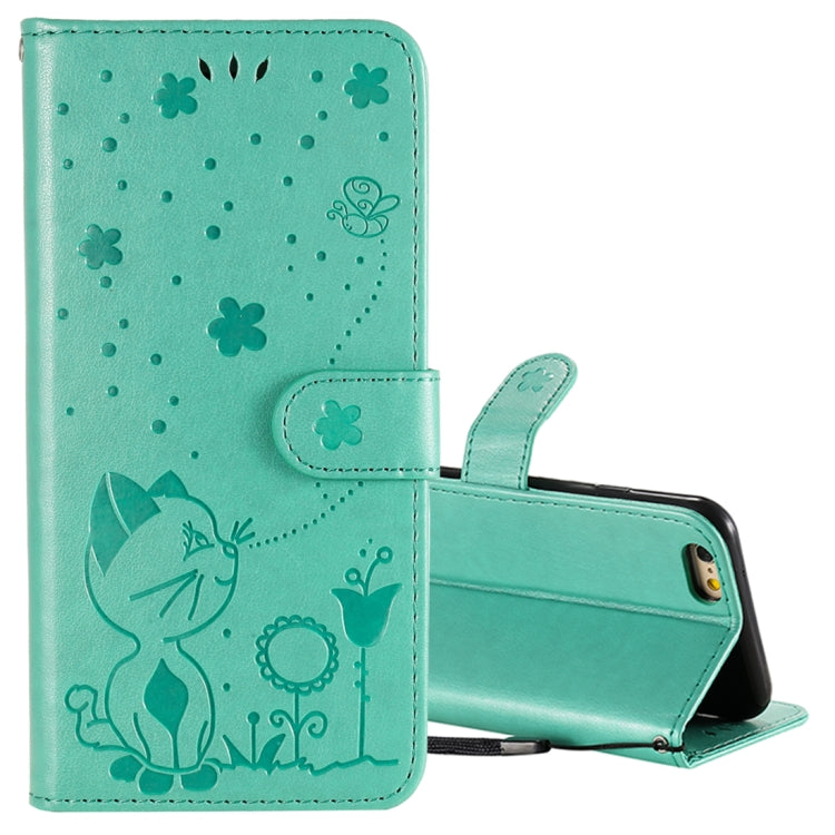 Funda de Cuero iPhone 6 Modelo Gato Abeja En Relieve a Prueba de Golpes Horizontal con Sostenedor y Ranuras para Tarjetas y Monedero (Verde)