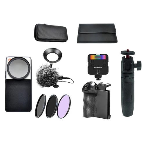 Juego 9 en 1: estuche para teléfono, caja de almacenamiento, CPL, NIGHT, ND2-400, mango de zoom, trípode, luz de relleno, micrófono, cubierta metálica de gran angular