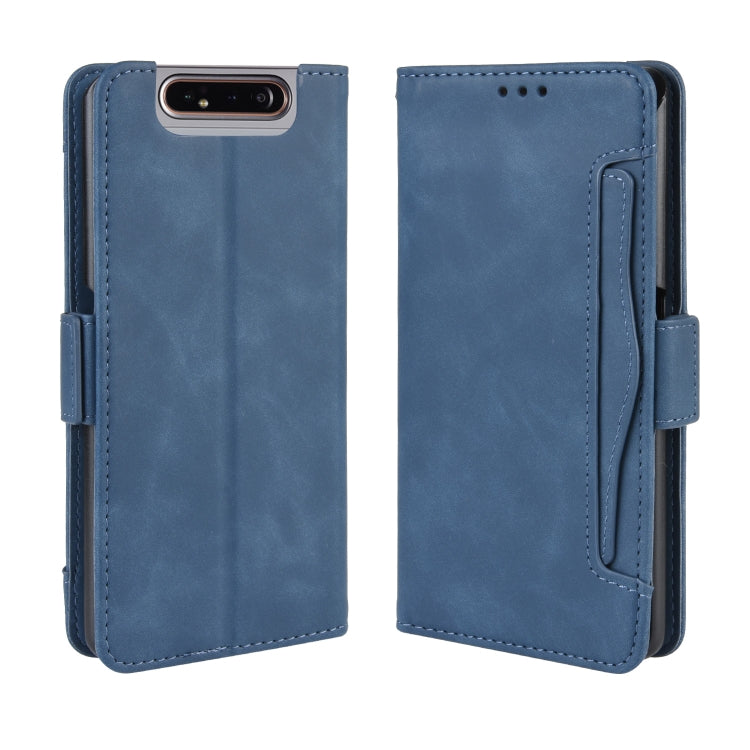 Estuche de Cuero Galaxy A80 A90 Patrón Piel de Becerro Billetera Ranura Tarjeta (Azul)