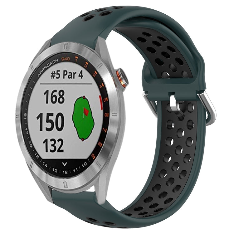 Banda de Reloj de Silicona Deportiva para Garmin Approach S40 20mm (Verde Oliva + Negro)