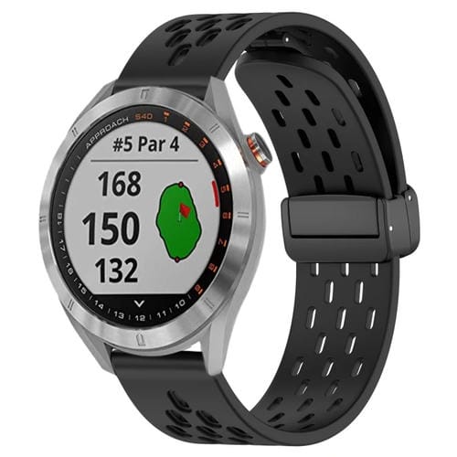 Correa de Reloj para Garmin Approach S40 de Silicona con Cierre Magnético Plegable de 20mm (Negro)