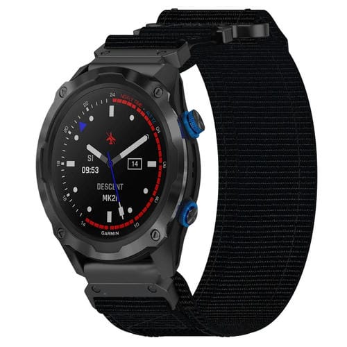 Correa de Reloj para Garmin Descent Mk 2I con Cierre Gancho y Bucle Nailon 26mm (Negro)