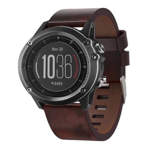 Correa para Garmin Fenix 3 Hr 26mm con Hebilla de Acero y Cuero (Marrón)