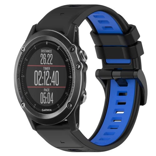 Correa de Silicona 26mm para Garmin Fenix 3 Hr Sports Dos Colores (Negro + Azul)