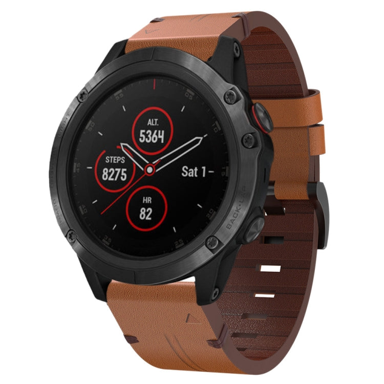 Correa de Reloj Garmin Fenix 5X Plus Cuero 26mm con Hebilla de Acero (Marrón)