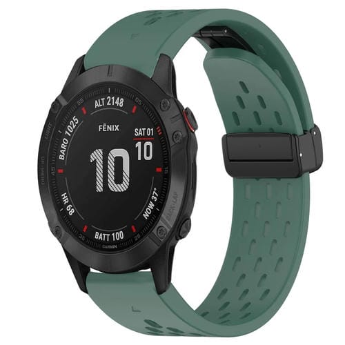 Correa de Silicona para Garmin Fenix 6 GPS con Orificio y Hebilla Plegable 22mm (Verde Oscuro)