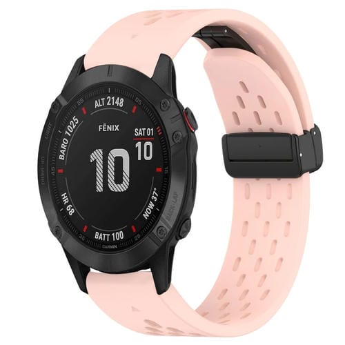 Correa de Reloj Silicona Garmin Fenix 6 Sapphire Gps con Hebilla Plegable 22mm (Rosa)