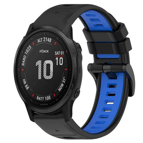 Correa para Garmin Fenix 6S 20mm Sports Silicona Dos Colores (Negro + Azul)