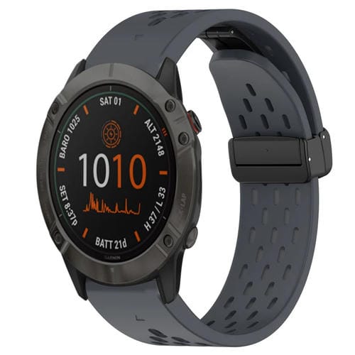 Correa de Silicona para Garmin Fenix 6X 26mm con Orificio y Hebilla Plegable (Gris Oscuro)