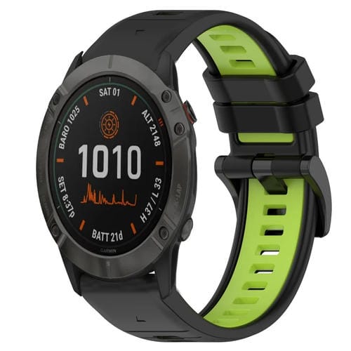 Correa de Silicona para Garmin Fenix 6X 26mm Sports Dos Colores (Negro + Verde Lima)