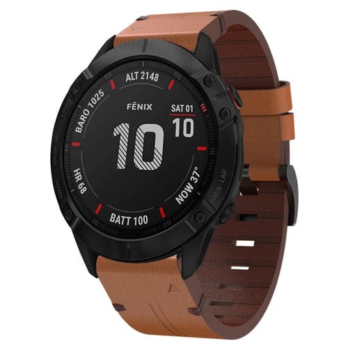 Correa de Reloj para Garmin Fenix 6X Zafiro 26mm de Cuero con Hebilla de Acero (Marrón)