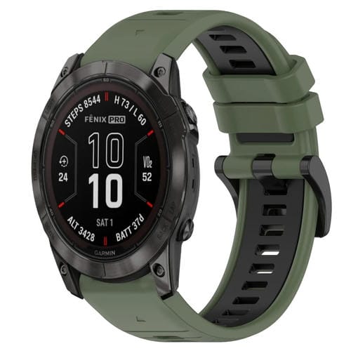 Correa para Garmin Fenix 7X Pro 51mm 26mm Silicona Deportiva Bicolor (Verde Oliva + Negro)