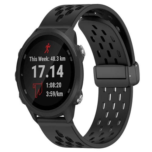 Correa de Reloj Silicona Garmin Forerunner 245 con Cierre Magnético Plegable 20mm (Negro)