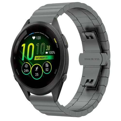 Correa de Reloj para Garmin Forerunner 265S con Cierre Butterfly de Metal Acero Inoxidable (Gris)