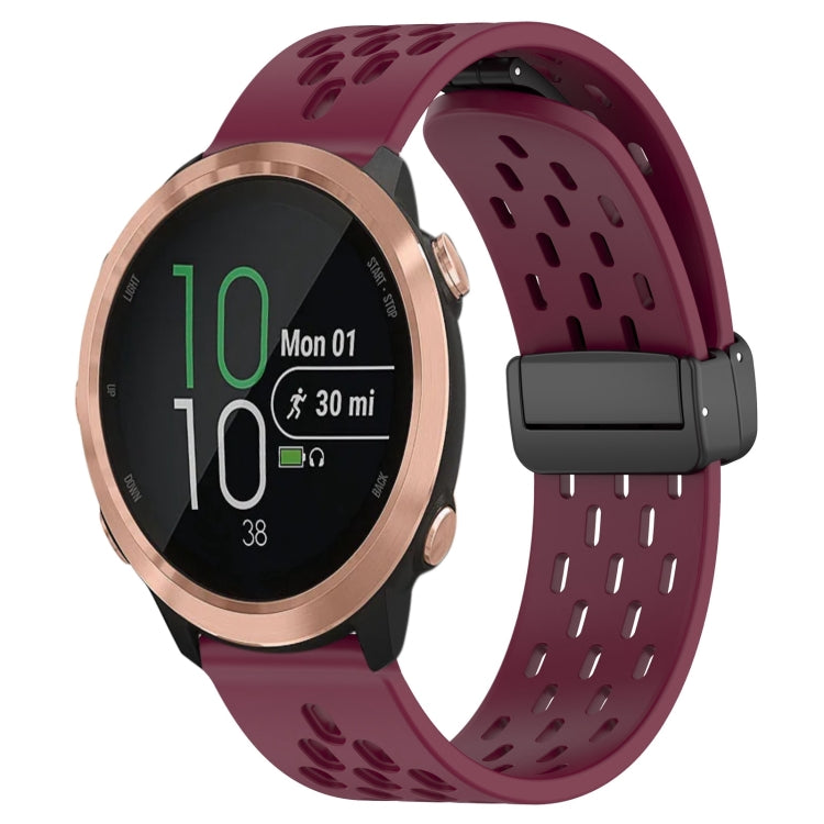 Correa de Reloj de Silicona para Garmin Forerunner 645 con Cierre Magnético Plegable de 20mm (Rojo Vino)