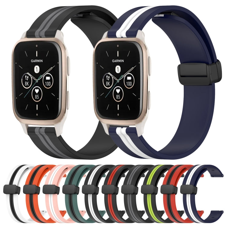 Correa de Reloj Garmin Forerunner Sq2 Music 20mm Silicona con Cierre Magnético Plegable (Negro + Rojo)