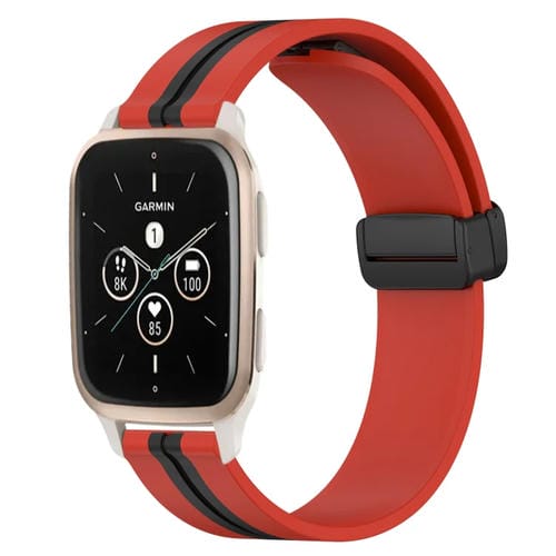 Correa de Reloj para Garmin Forerunner Sq2 Music 20mm Silicona con Cierre Magnético Plegable (Rojo + Negro)