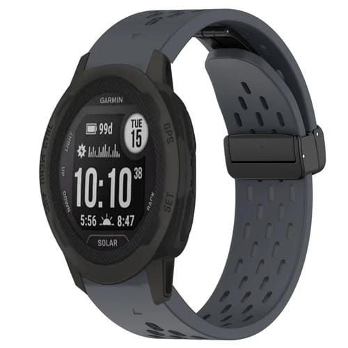 Correa de Silicona para Garmin Instinct 2S con Orificio y Hebilla Plegable 20mm (Gris Oscuro)