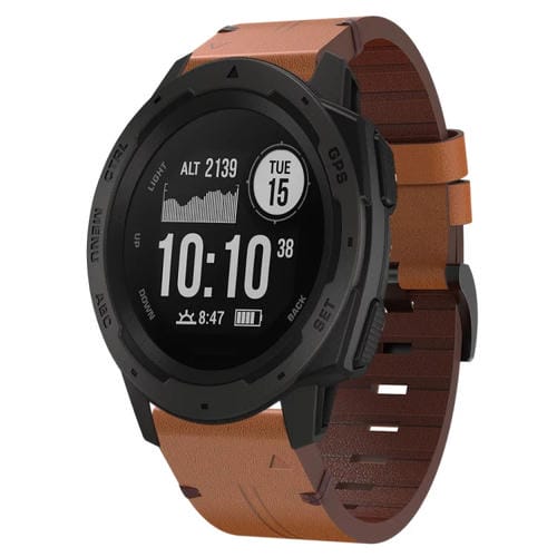 Correa de Reloj para Garmin Instinct con Hebilla de Acero y Cuero 22mm (Marrón)