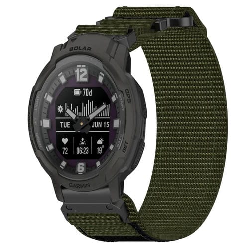 Correa de Reloj para Garmin Instinct Crossover Solar con Cierre de Gancho y Bucle de Nailon 22mm (Verde Militar)