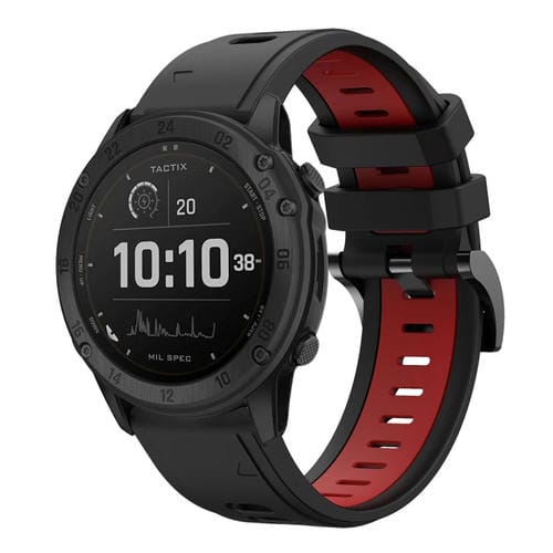 Banda de Reloj para Garmin Tactix Delta 26mm Silicona Deportiva Dos Colores (Negro + Rojo)