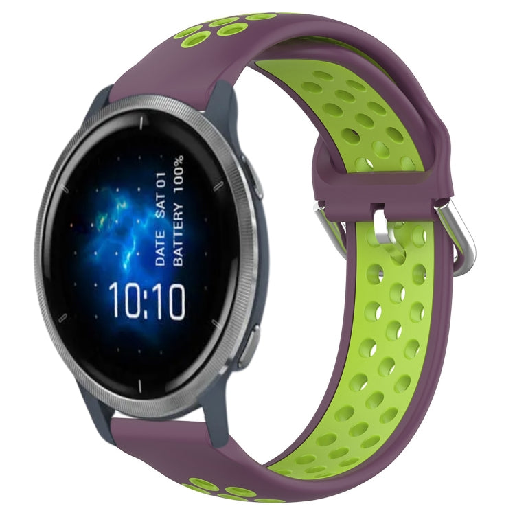 Correa de Reloj Garmin Venu 2 22mm silicona deportiva transpirable perforada (Púrpura + Lima)