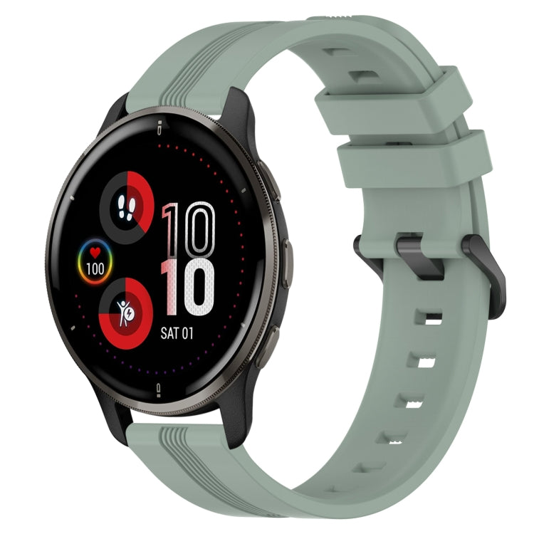 Correa de Reloj Garmin Venu 2 Plus 20mm Silicona con Rayas Cóncavas (Verde Grisáceo)