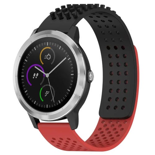 Correa de Silicona para Garmin Vivoactive 3 con Puntos 3D Transpirables y Orificios de 20mm (Negro + Rojo)