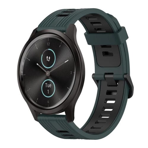 Banda de Reloj de Silicona para Garmin Vivomove Patrón Vertical 20mm (Verde Oliva + Negro)