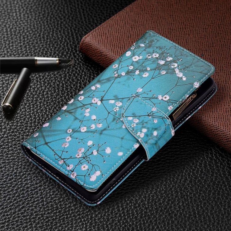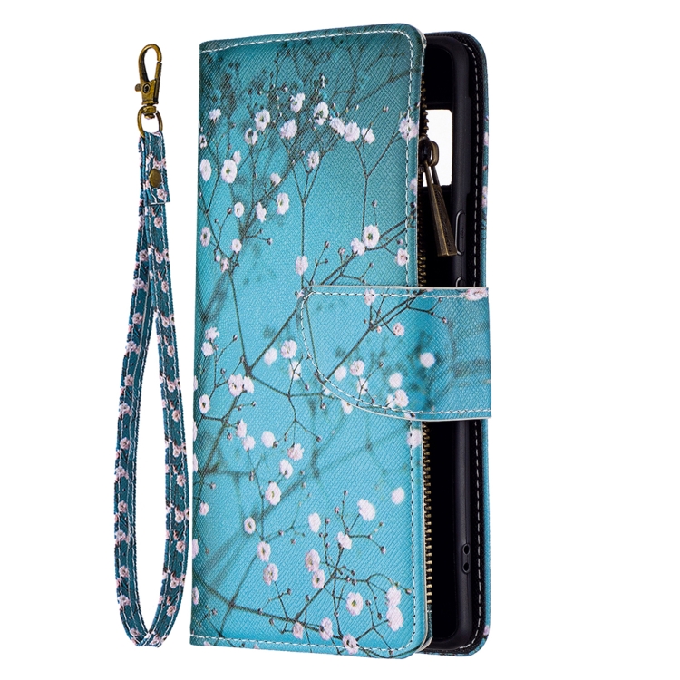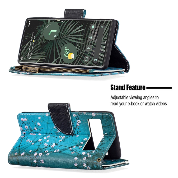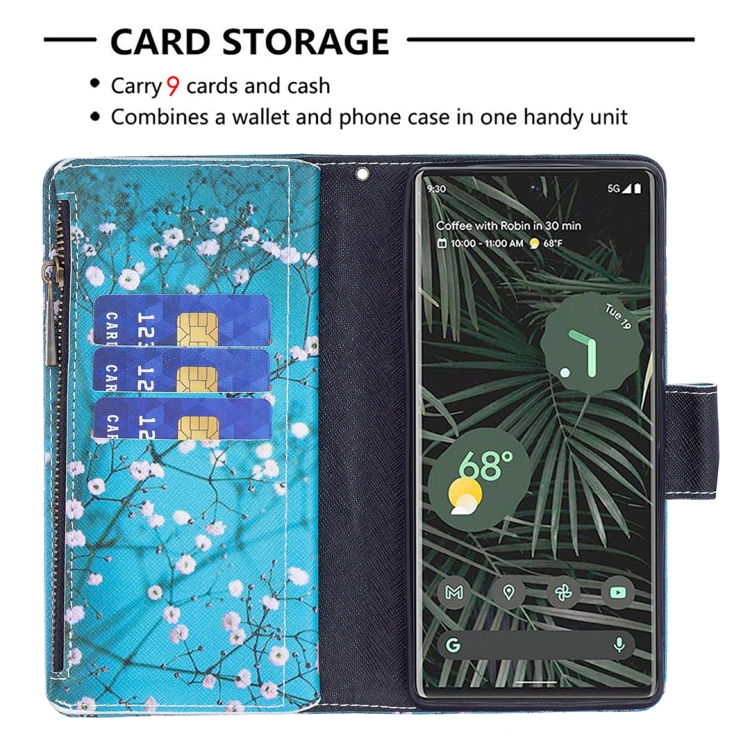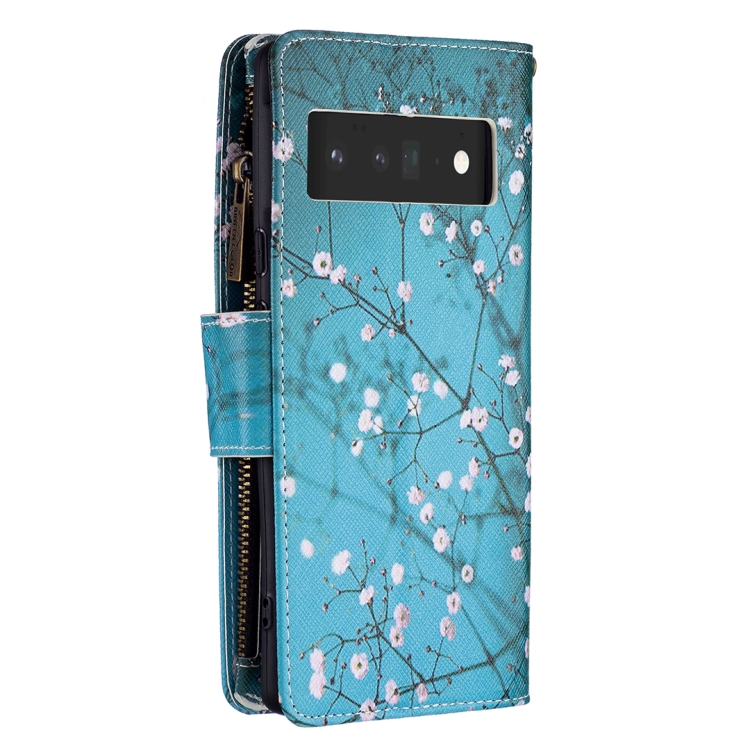 Para Google Pixel 6 PRO Coloree Dibujos de dibujo con cremallera Horizontal Flip Teléfono Funda de cuero con soporte y ranuras para tarjetas (Plum Blossom)