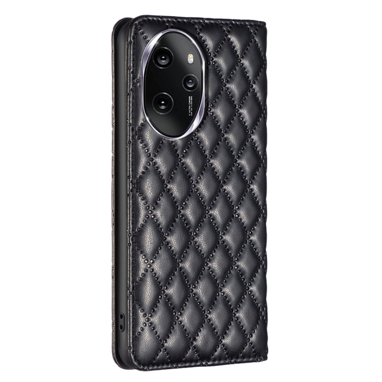 Funda para Honor 100 Pro con Tapa de Cuero Magnético y Diseño Diamond Lattice (Negro)